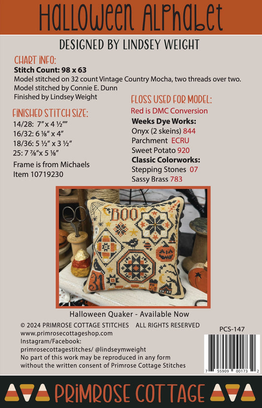 Halloween Alphabet Primrose Cottage Cross Stitch Pattern