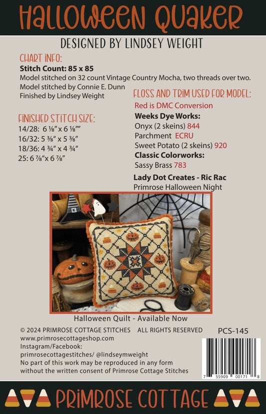 Halloween Quaker Primrose Cottage Cross Stitch Pattern