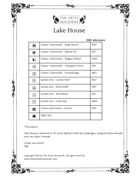 Lake House The Artsy Housewife Cross Stitch Pattern