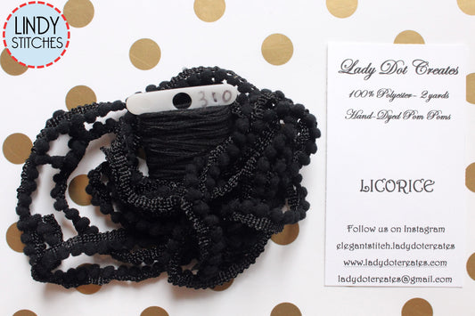 Licorice Black Mini Pom Pom Trim by Lady Dot Creates Hand Dyed 2 Yards