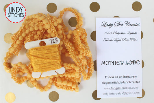 Mother Lode Mini Pom Pom Trim by Lady Dot Creates Hand Dyed 2 Yards Yellow
