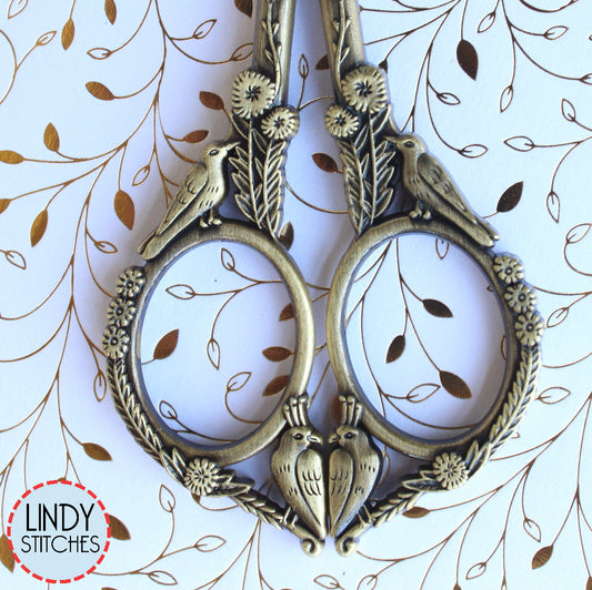 SALE Feathered Friends Embroidery Scissors Antique Gold or Copper