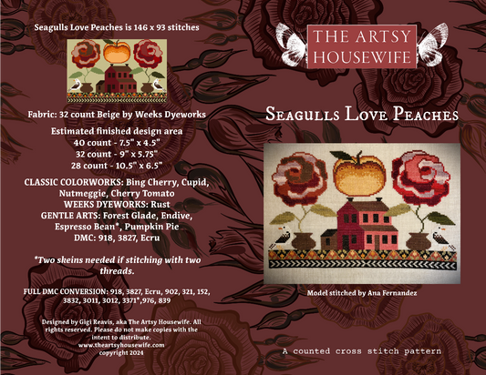 SALE Seagulls Love Peaches The Artsy Housewife Cross Stitch Pattern