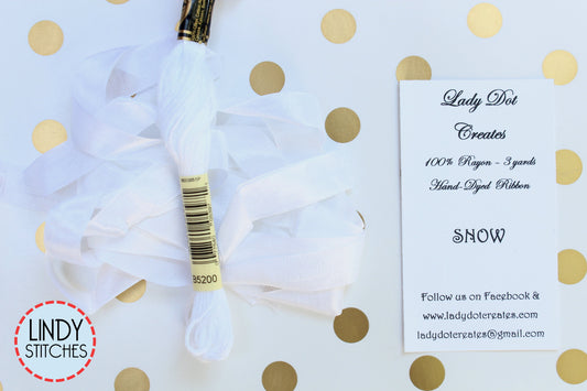 SALE Snow Ribbon by Lady Dot Creates Hand Dyed 3 Yards Rayon Ribbon White