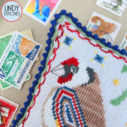 Air Mail December #10 Northern Cardinal Cross Stitch Pattern by Lindy Stitches