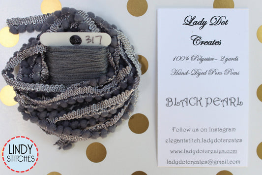 Black Pearl Mini Pom Pom Trim by Lady Dot Creates Hand Dyed 2 Yards