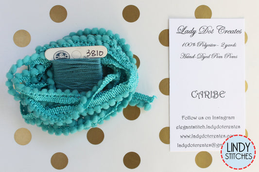 Caribe Mini Pom Pom Trim by Lady Dot Creates Hand Dyed 2 Yards Blue
