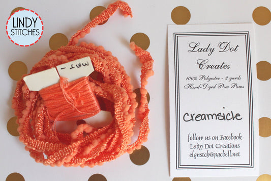 Creamsicle Mini Pom Pom Trim by Lady Dot Creates Hand Dyed 2 Yards Orange