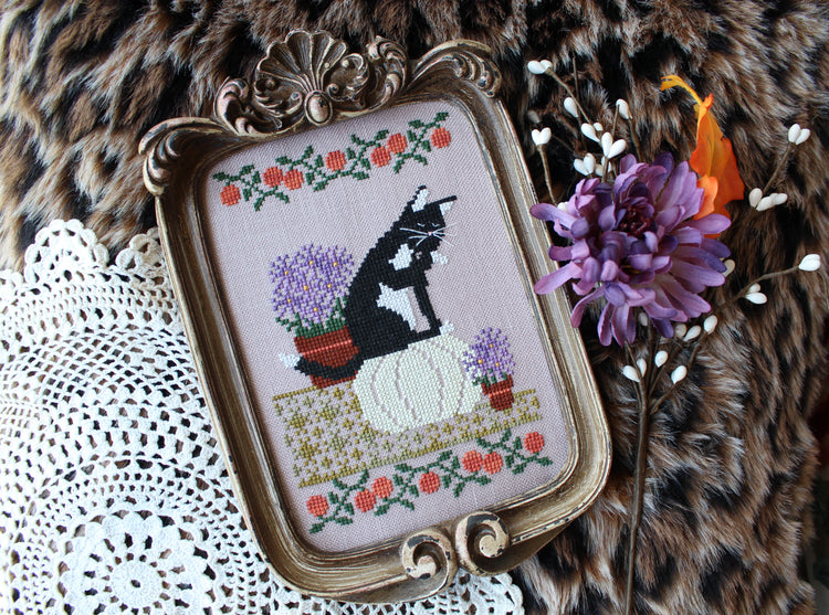 Cats in the Garden is a four-part seasonal series featuring --- you'll never guess --- cats in the garden! A new cat variety for each season with beautiful blooms, busy doing cat activities. This series has been very popular. Each piece fits in a standard 4 x 6 inch frame for easy finishing!