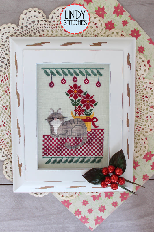 Napping in the Poinsettias Cross Stitch Pattern Lindy Stitches Cats in the Garden #4