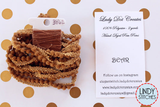 Bear Mini Pom Pom Trim by Lady Dot Creates Hand Dyed 2 Yards