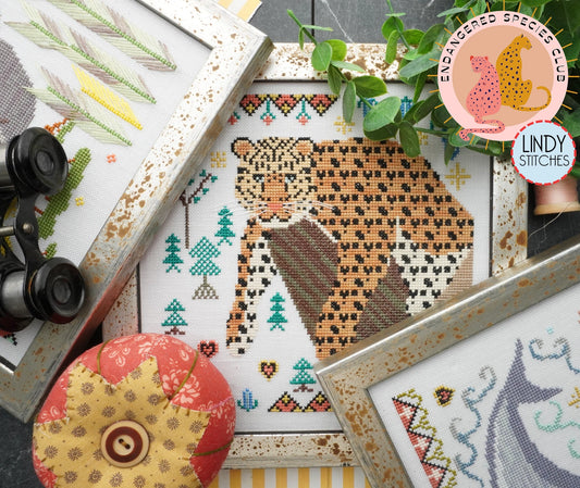 Amur Leopard Cross Stitch Pattern by Lindy Stitches Endangered Species Club #1