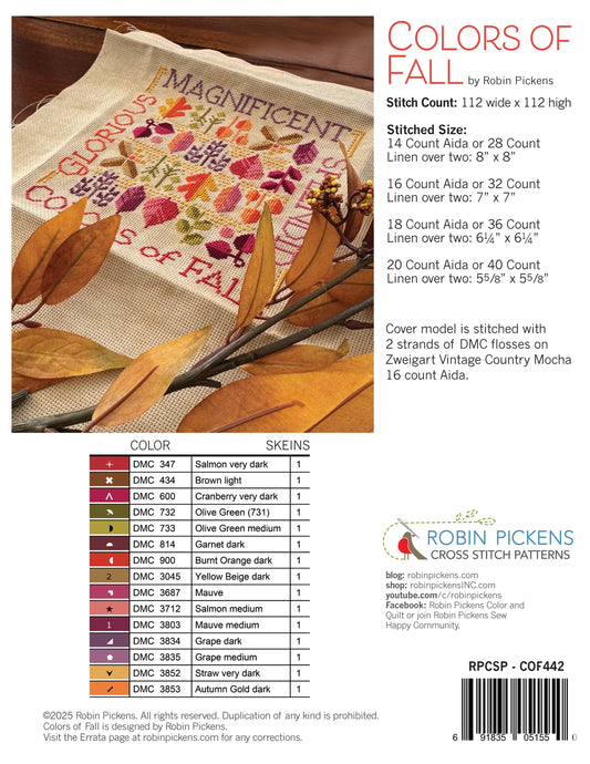 Robin Pickens COLORS OF FALL Cross Stitch Pattern