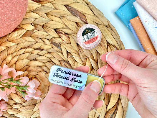 Thread conditioners are formulated from all natural and non-toxic beeswax and oil blend that coats your thread to prevent tangles, fraying, and brittleness. Think of it as a deep conditioner for your thread and embroidery floss, sometimes including fun scents.