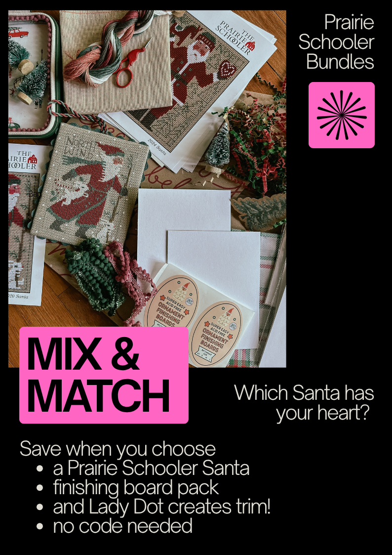 Bundle up a Prairie Schooler Santa, finishing board, and trim, and automatically save! No code needed.