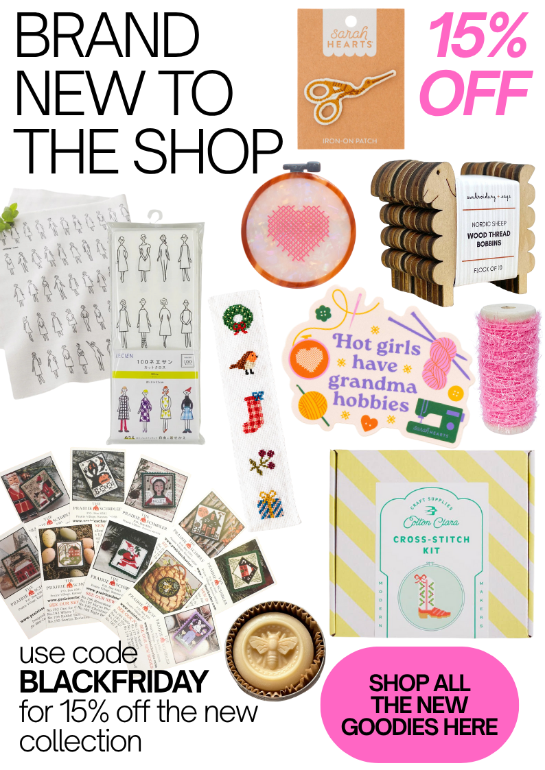 Save 15% on ALL our newest shop additions, from stickers to bobbins to hair clips! Use coupon code BLACKFRIDAY.