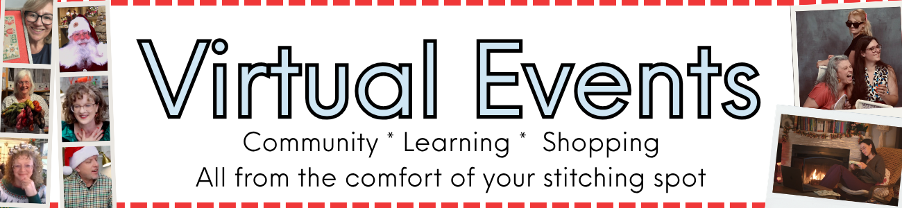 Our virtual events bring the excitement of a retreat straight to your home. Stitchers from around the world gather to socialize, take needlework classes, laugh, and shop.