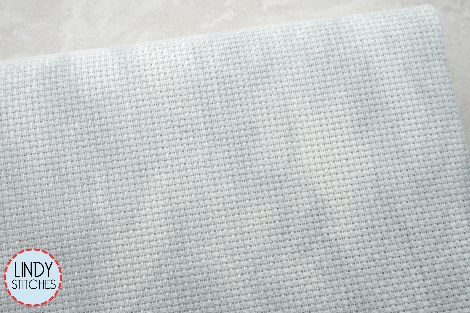 14 count Vintage Stormy Night Aida. A gentle grey. This is a lovely shade that promises not to compete with your floss colors. Approximate DMC match: between 02 & 03.