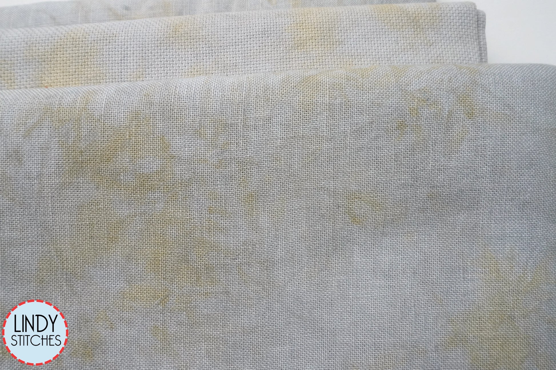 Grey Sand Hand Dyed  Aida by Xjudesign.  This fabric has such character!  A lovely medium blue grey with some light yellow mottling.
