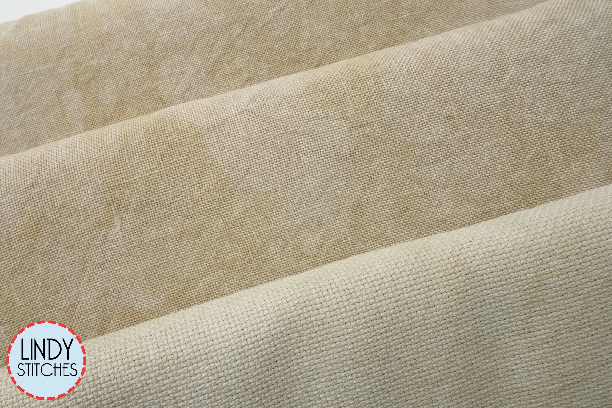 Picture This Plus hand dyed fabric in the color Wren. This is a gorgeous cooler brown, close to DMC 3033 / 3782. Edges are not serged. Picture This Plus uses a Zweigart base.