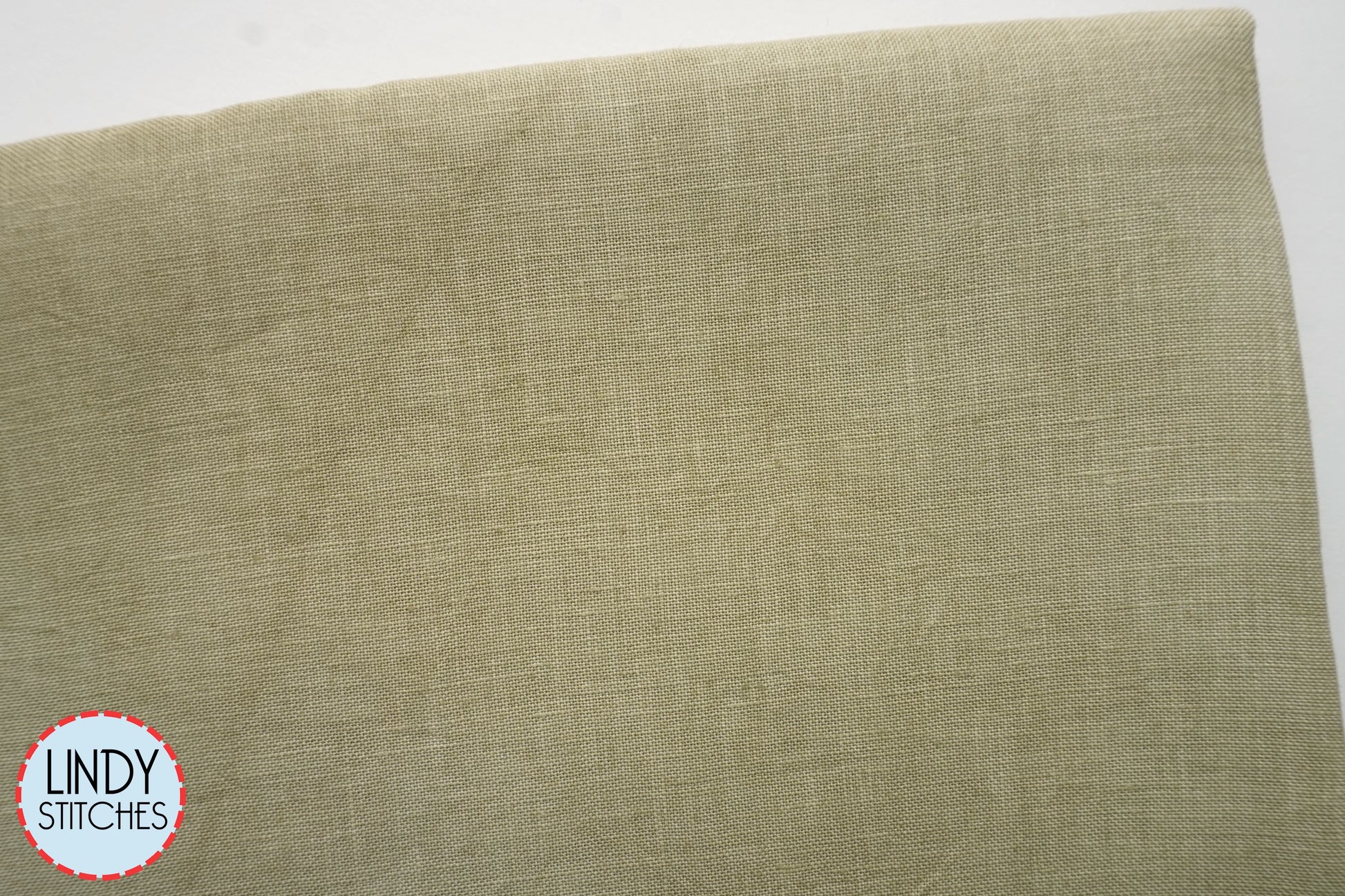 Khaky Hand Dyed Linen by Xjudesign. This fabric is a gorgeous neutral khaky color. The main green is close to DMC 524.