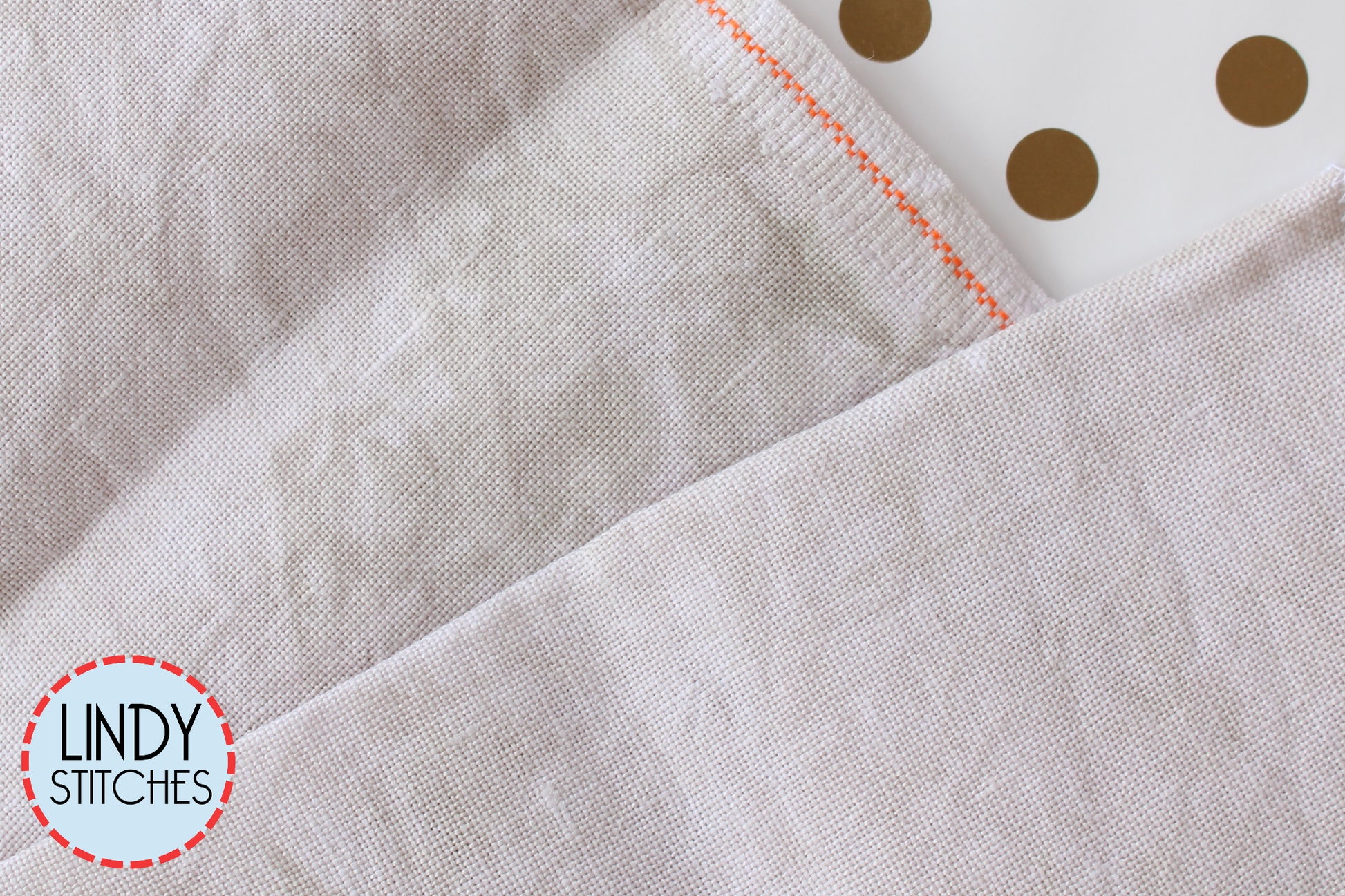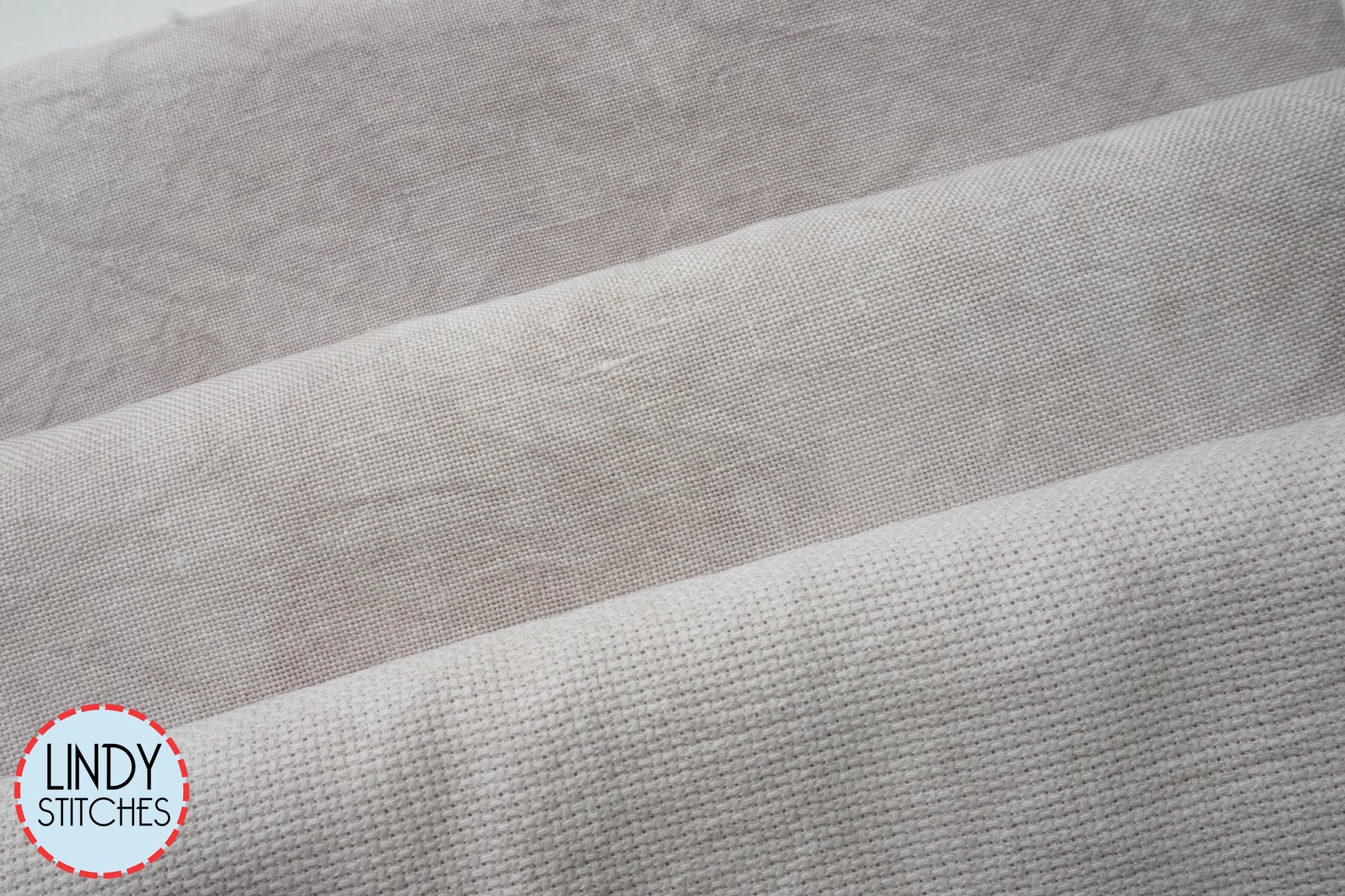 Pictured from top to bottom: 40 count linen, 36 count linen, 18 count aida.