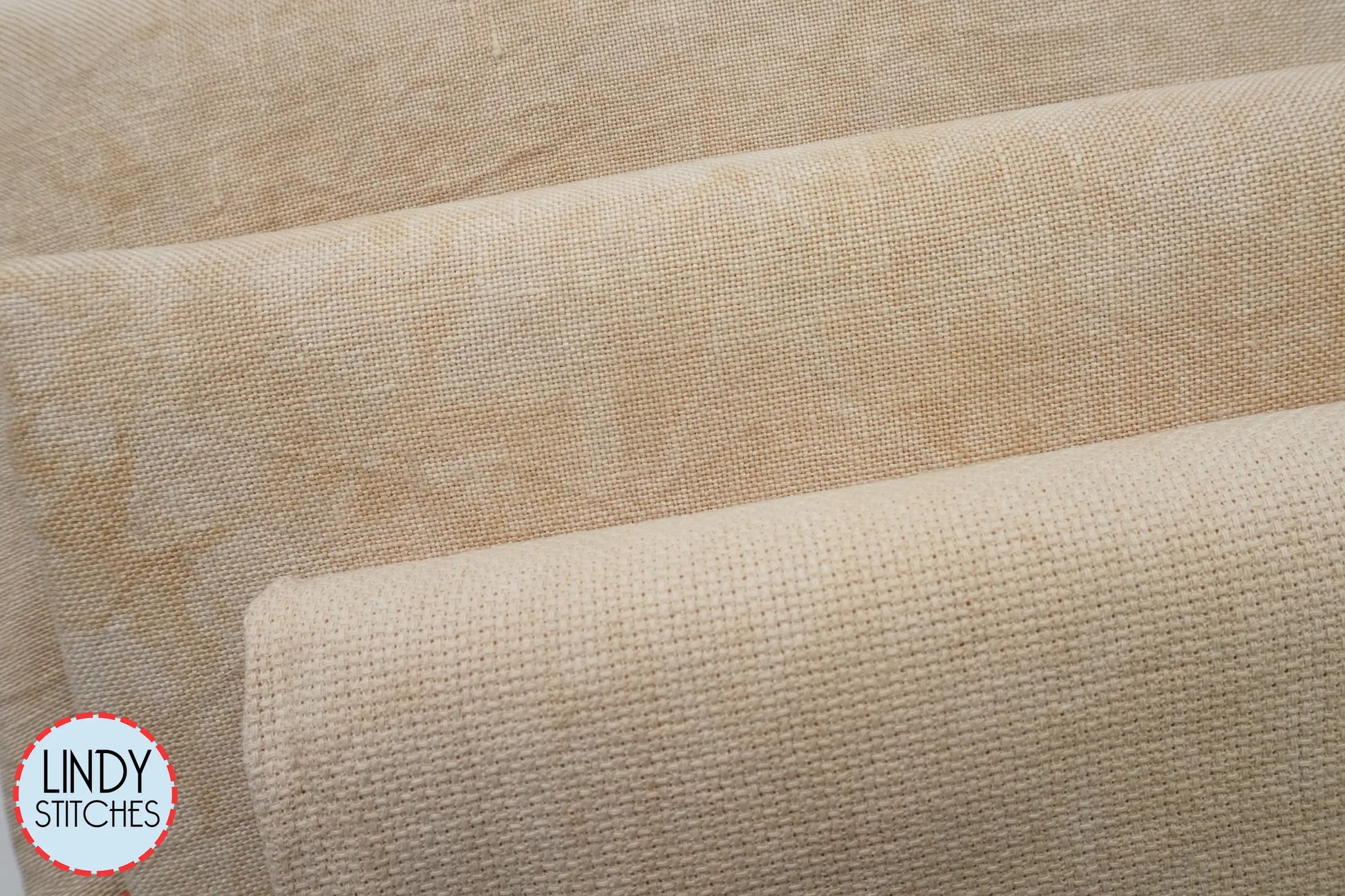 Pictured fabrics from top to bottom: 36 linen, 32 linen, 16 aida.