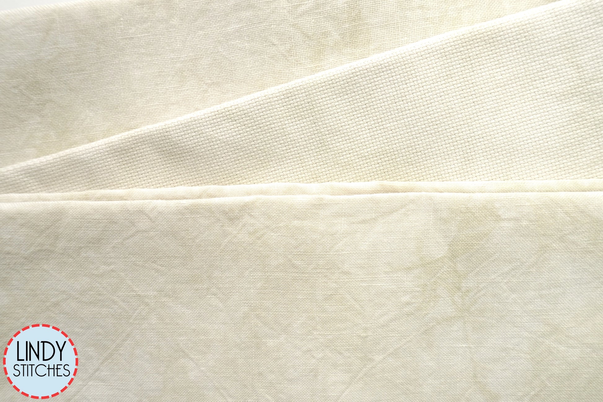 Pictured from top to bottom: 32 count linen, 18 count aida, 40 count linen.