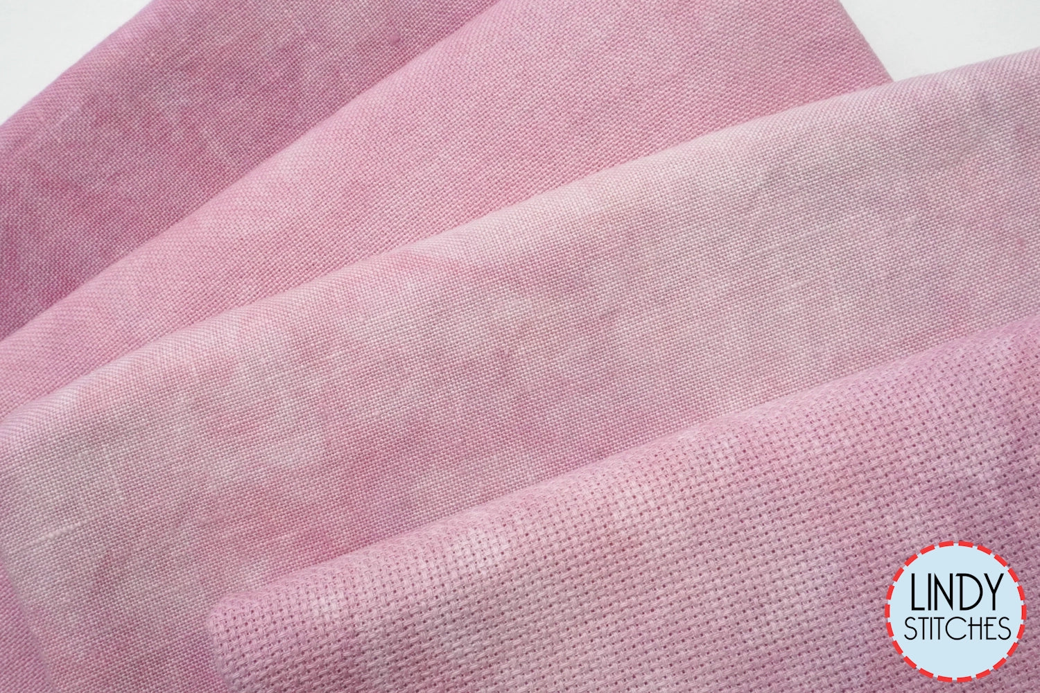 - Fabrics shown (left to right): 36 count Linen, 32 count Lugana, 32 count Linen, 16 count aida