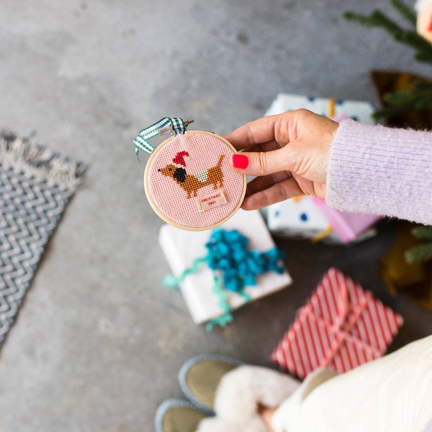 Christmas Dachshund Cross Stitch Kit Beginner Friendly