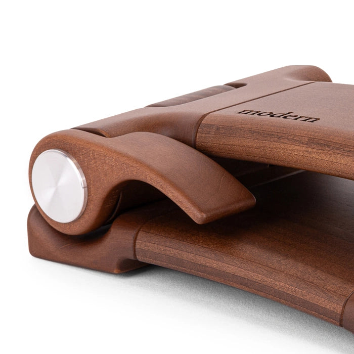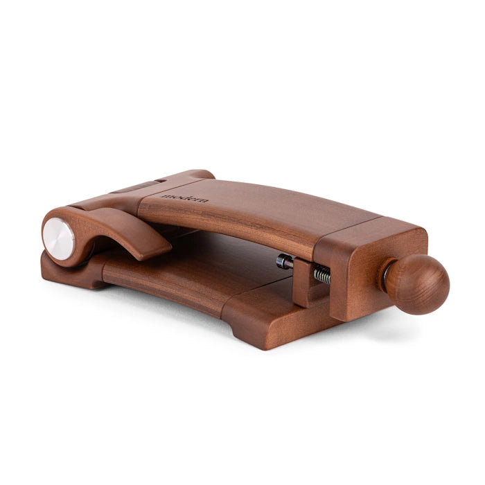 Our Cross Stitch Stand Modern is crafted from a solid block of hardwood which beautifully highlights the wood grain texture. It securely accommodates Q-snaps, hoops, and small scroll frames. Its lightweight design makes it a portable option, perfect for travel.