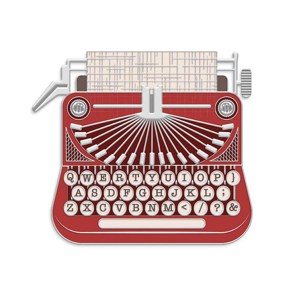 The Type/ography Scissor Minder by Lori Holt. It is 2.75" x 3.15" and doubles as a fridge magnet.