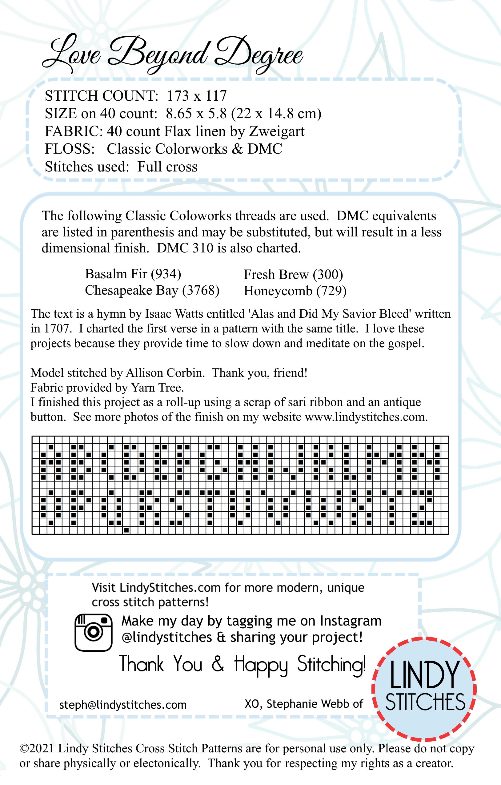 Love Beyond Degree Cross Stitch Pattern by Lindy Stitches PDF