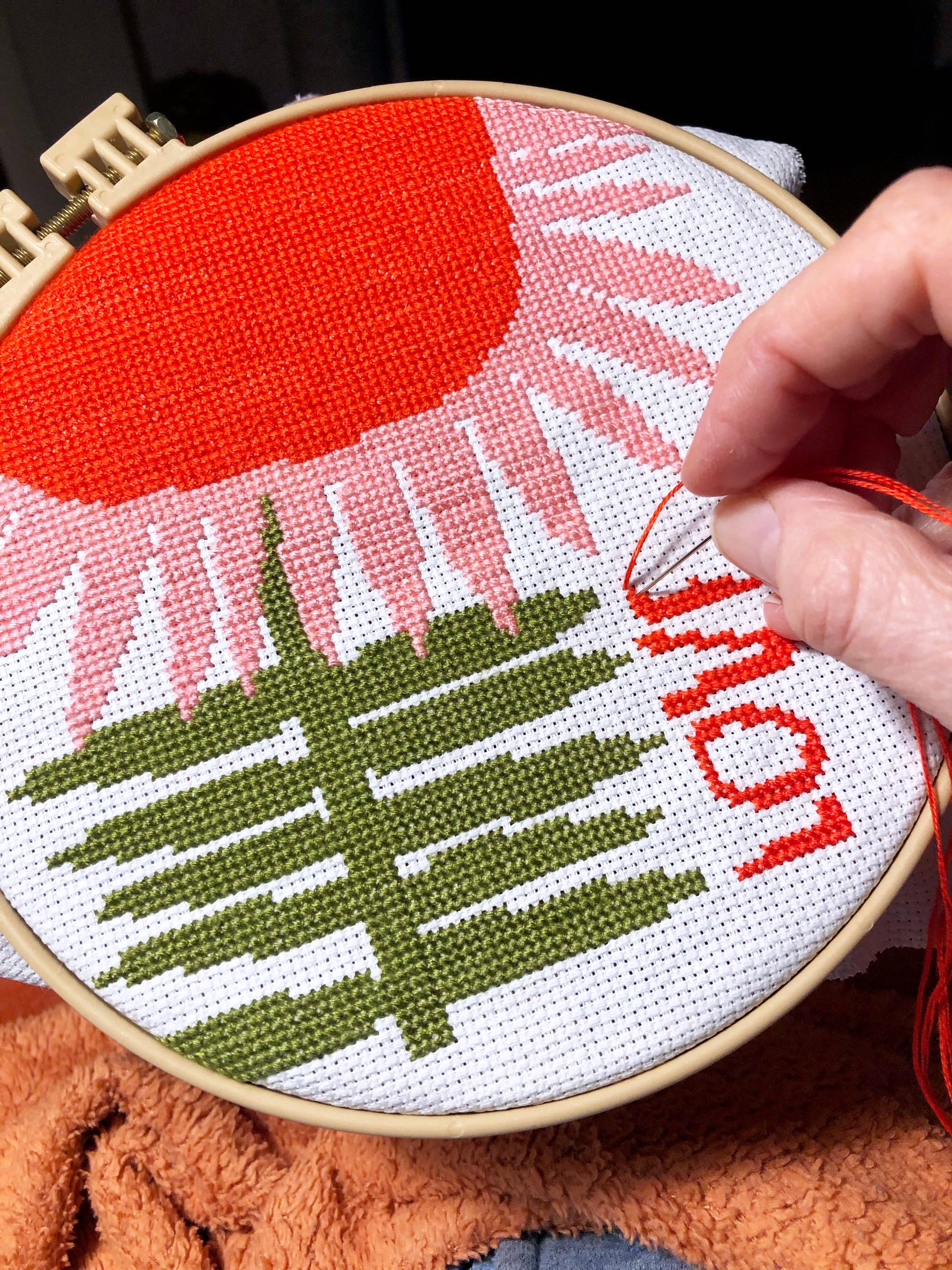 This flower is sure to be joyful and relaxing to stitch! Perfect for a beginner or a stitcher just looking to have something easy to work on in the car or during travel.
