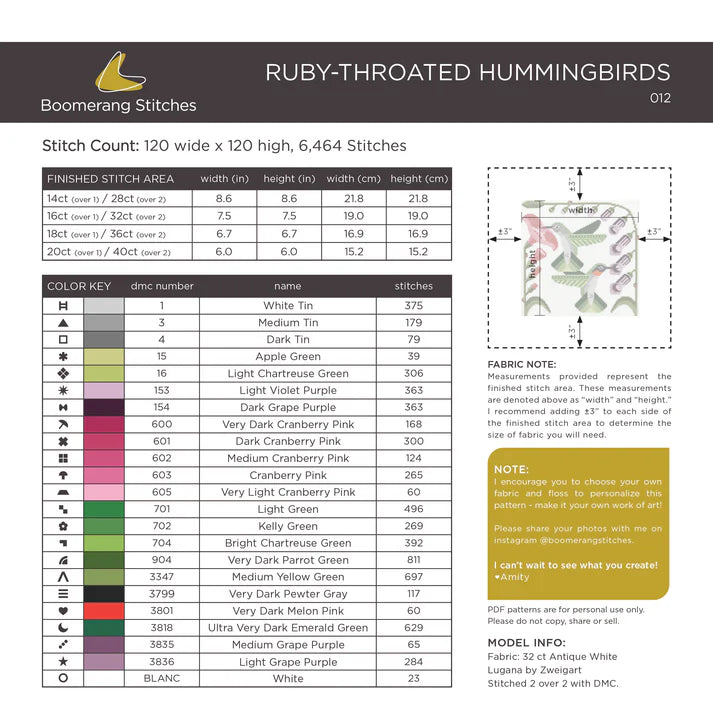 PREORDER Boomerang Stitches RUBY-THROATED HUMMINGBIRDS Cross Stitch Pattern Nashville Market