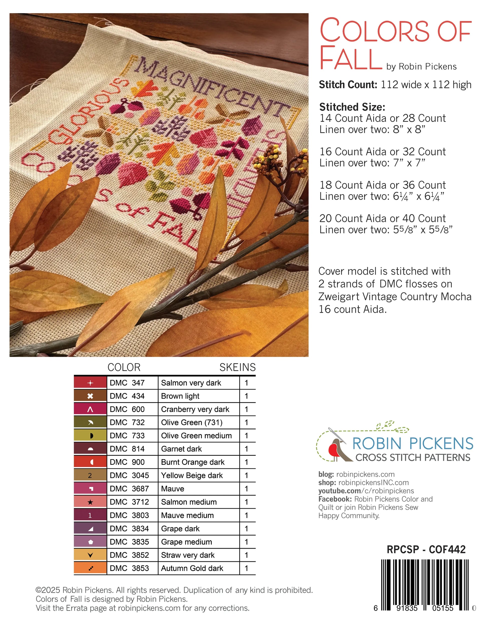 Robin Pickens COLORS OF FALL Cross Stitch Pattern