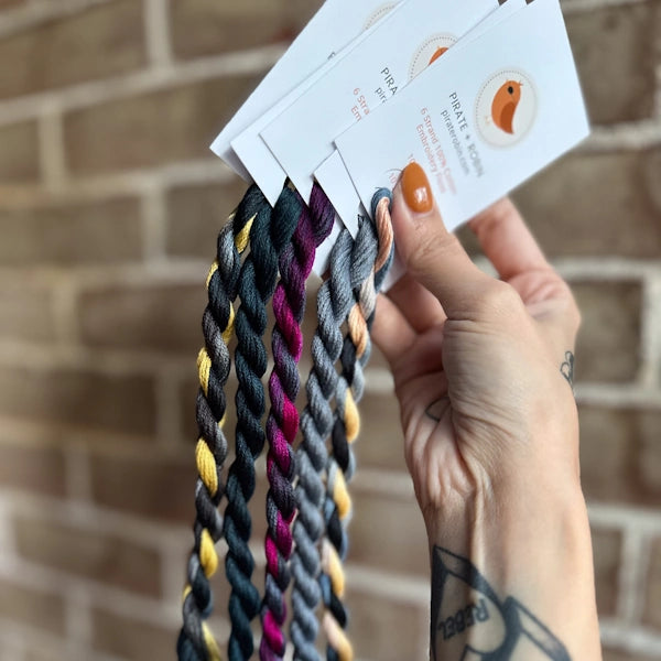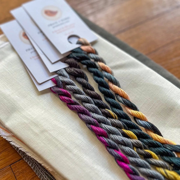 Drawing inspiration from one of my favorite albums and cities, we came up with this palette for you. The mood board included Baltimore icons Edgar Allen Poe and the Salt Box, the melancholy of Greenmount Cemetery where the inventor of the Ouija board rests in peace and the hues of sunrise and sunset on the Chesapeake Bay. Packaged in a reusable bag. Each skein 1 10 yards of 6 stranded 100% cotton floss