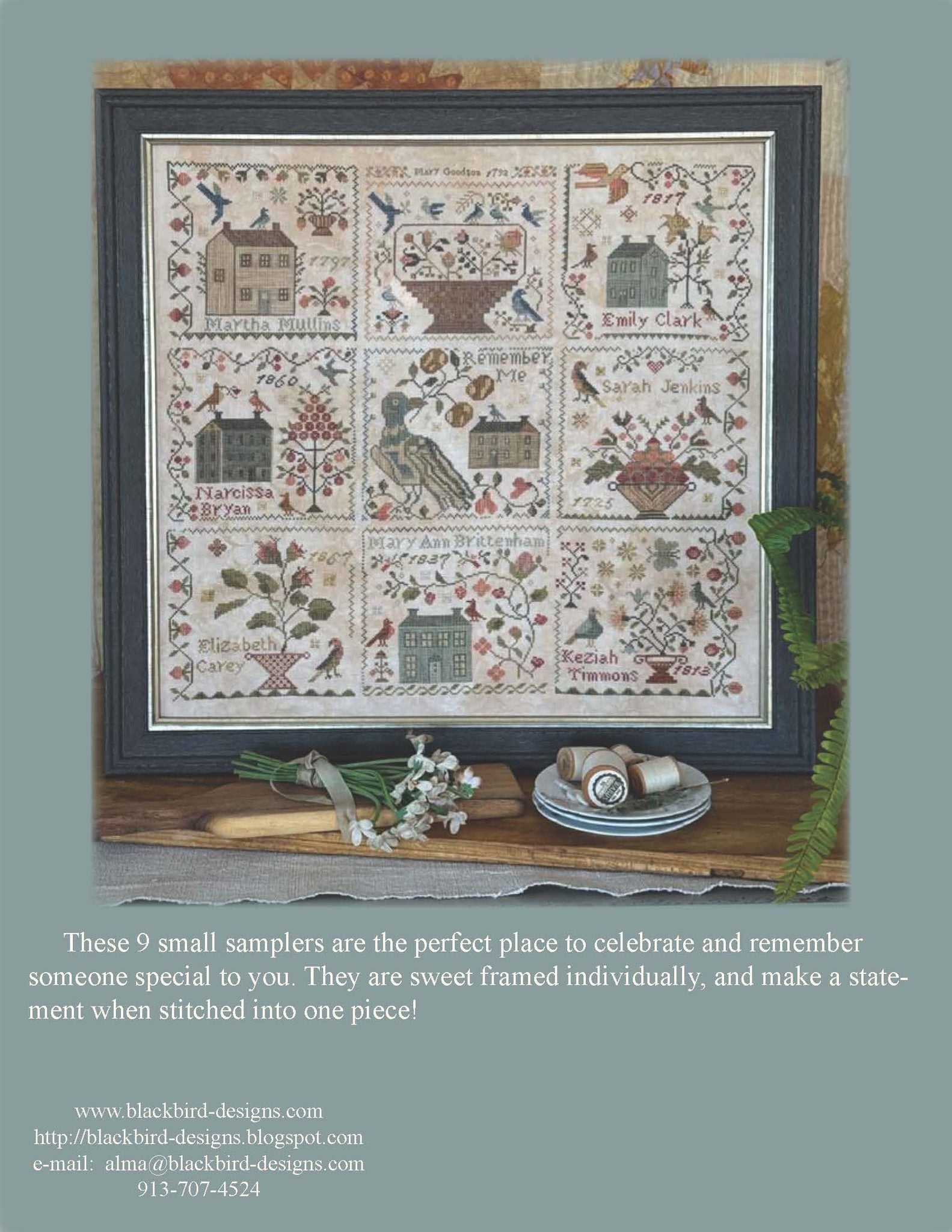 PREORDER Blackbird Designs REMEMBER ME Cross Stitch Pattern Book