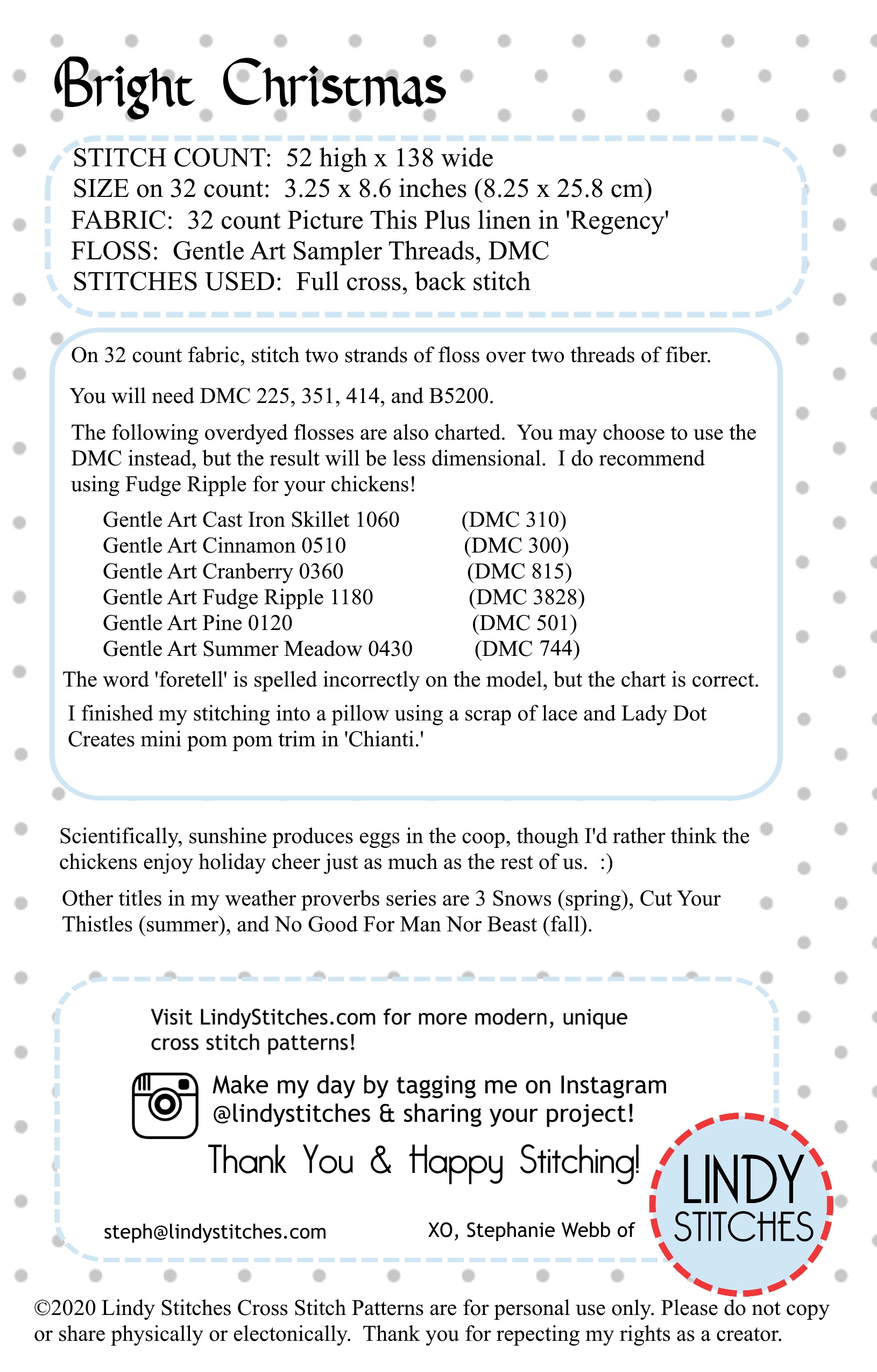 Lindy Stitches Cross Stitch Patterns are for personal use only. Please do not copy or share. All PDF patterns are copyright protected and may not be redistributed, reproduced, or shared in any manner. Finished cross-stitching projects from this pattern may be sold as long as you provide credit for my design with an active link to https://www.etsy.com/shop/LindyStitches . Thank you for respecting my rights as a creator.