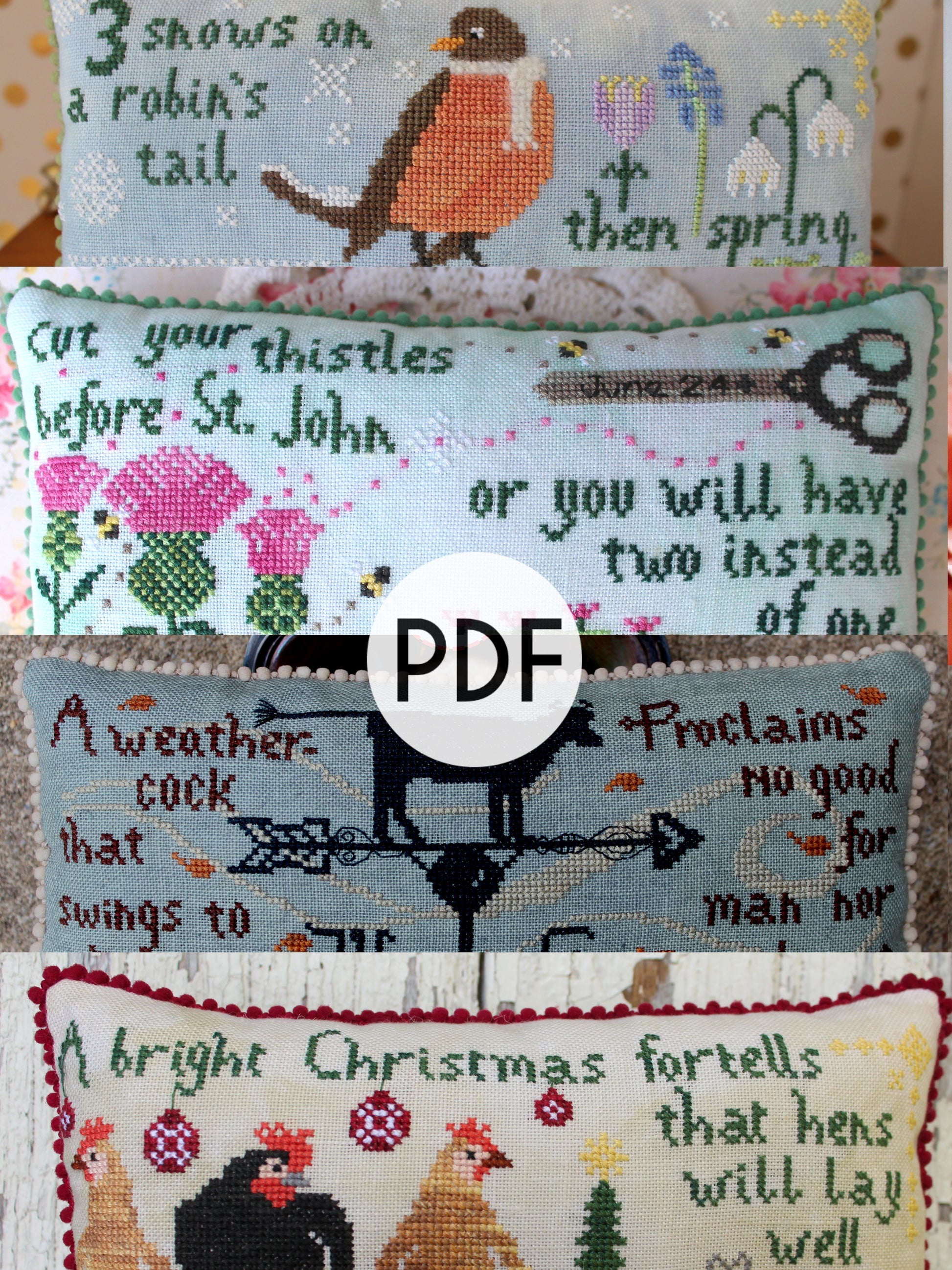 Weather Proverb Set of Four PDF Cross Stitch Patterns by Lindy Stitches