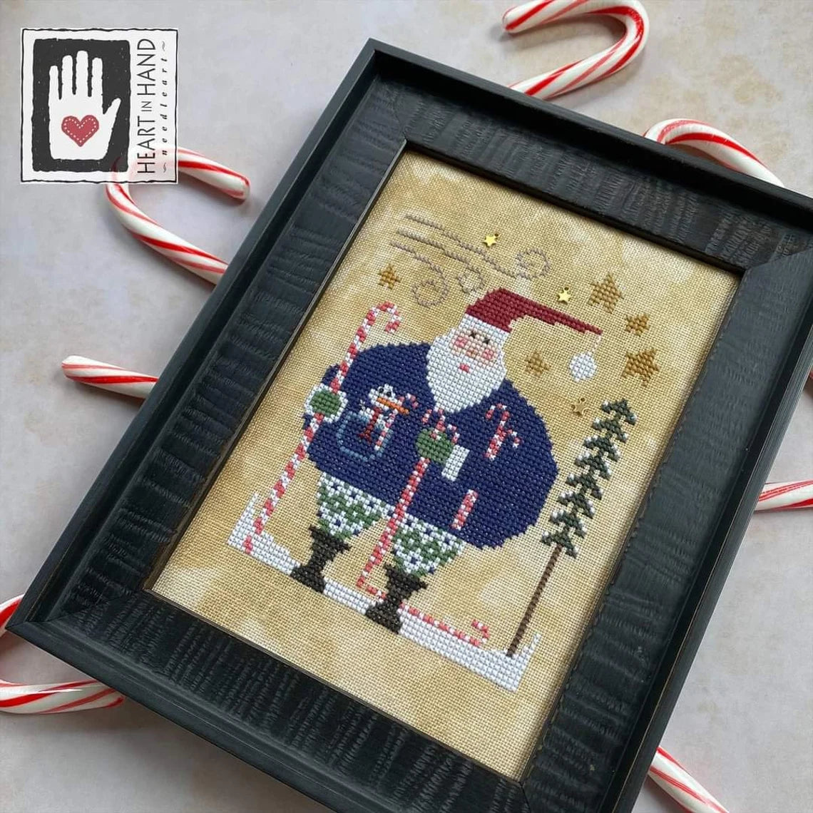 Wee Santa 2020 from Heart in Hand! Look at this precious fellow! You'll love stitching him up! We love everything from the blue coat to the candy canes!